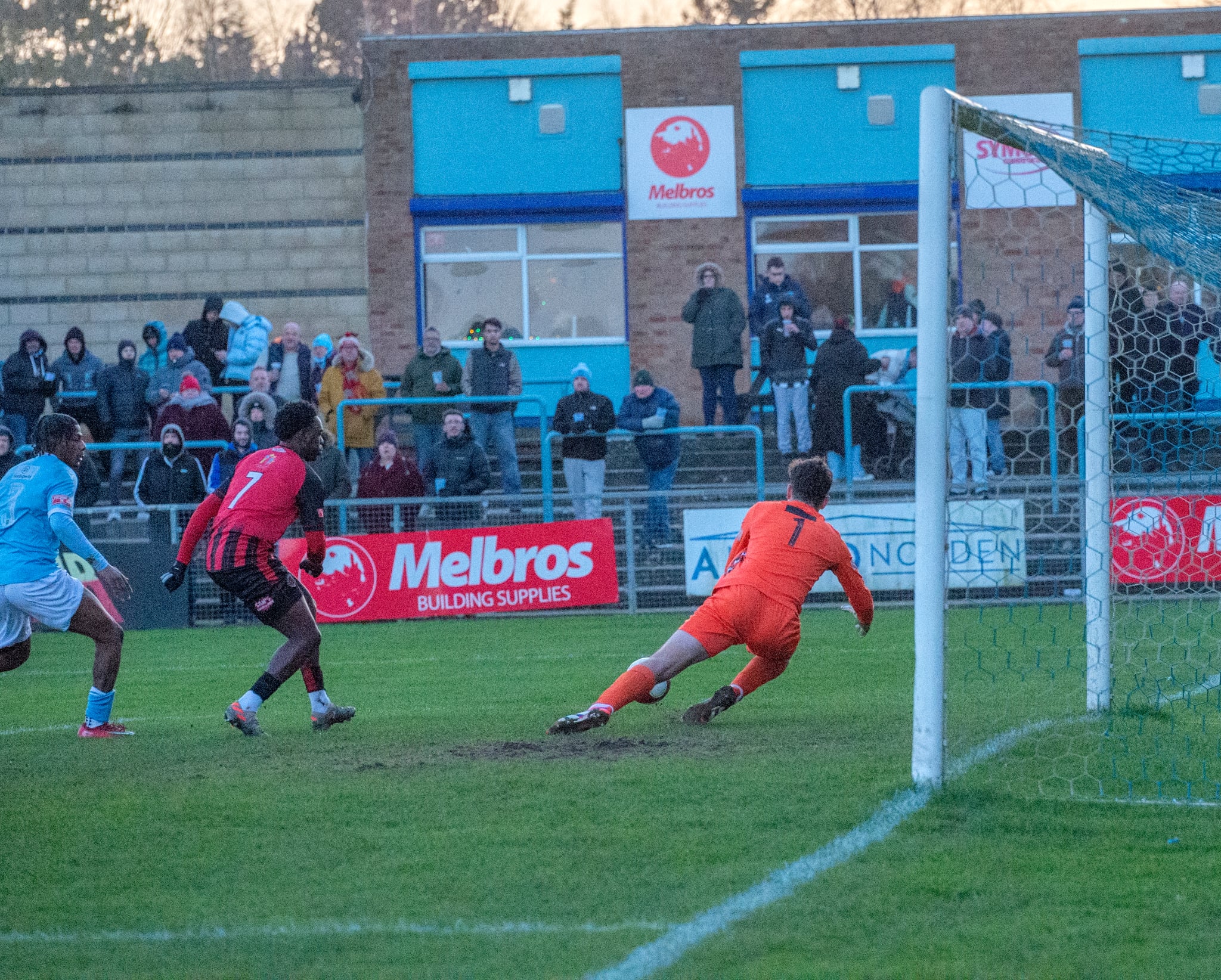 It was a fairly lively start on a bitterly cold day, with both sides trying to push forward. Dales earned a free kick after five minutes, when he was pulled back, but the following effort went wide.